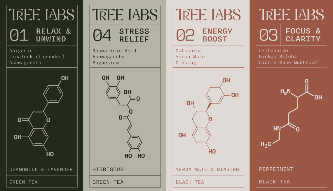 Tree Labs is a tea brand designed to emphasize the science behind the beverages, helping them to be even more effective psycologically.